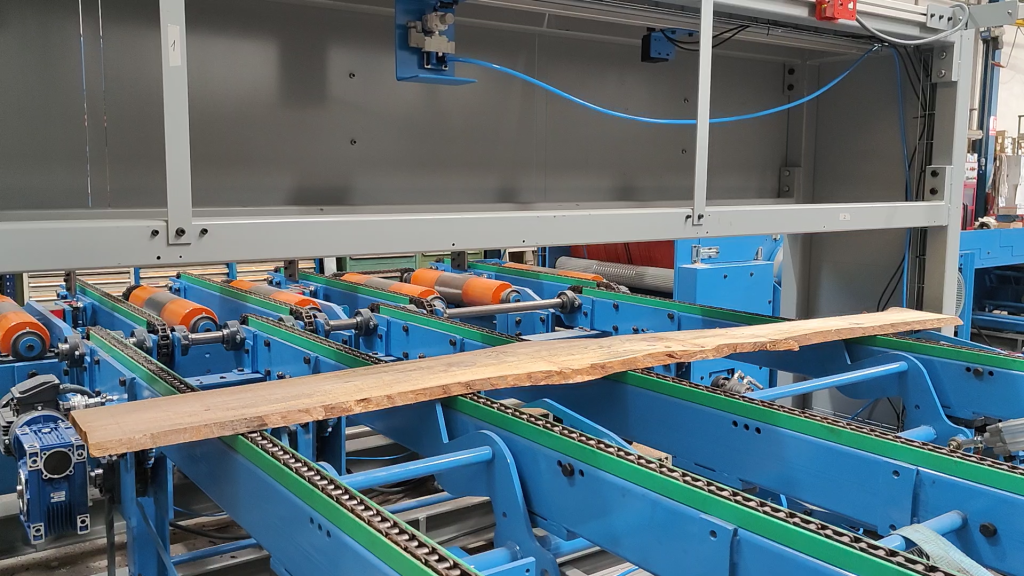 El sistema de visión 3D permite analizar cada tablero antes del corte mediante la generación de un modelo tridimensional preciso que identifica geometrías, deformaciones, irregularidades y variaciones dimensionales. Gracias a esta información, la línea es capaz de optimizar automáticamente las trayectorias de corte en los tableros de madera, maximizando el aprovechamiento del material y reduciendo los desperdicios generados durante el proceso.